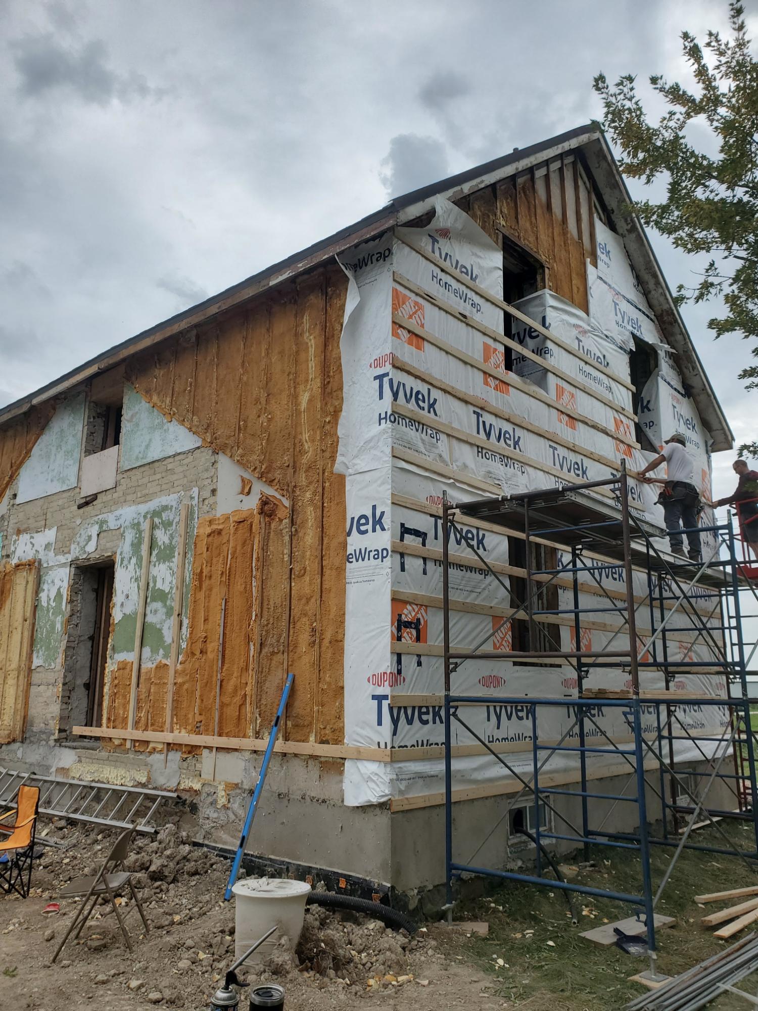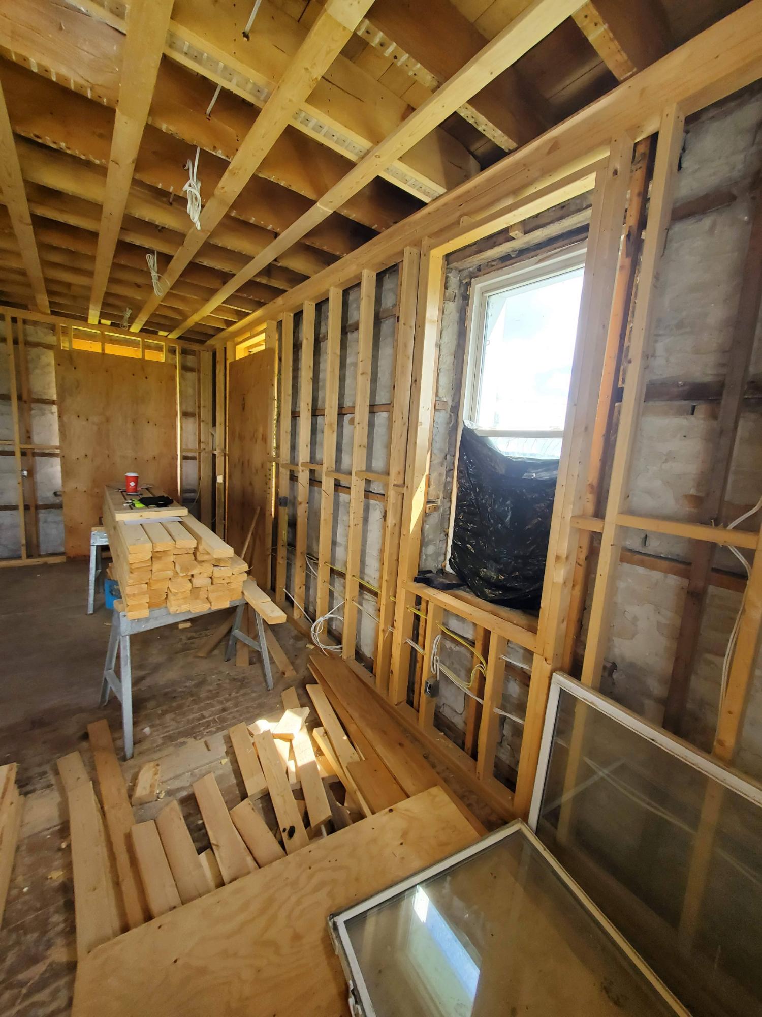 The renovation began with a meticulous check of the framing to ensure it was level and square, setting a solid foundation for the new layouts. While the interior design choices were being finalized, significant work was needed on the home’s exterior. The walls required leveling to prepare for new siding, ensuring a clean, polished look.