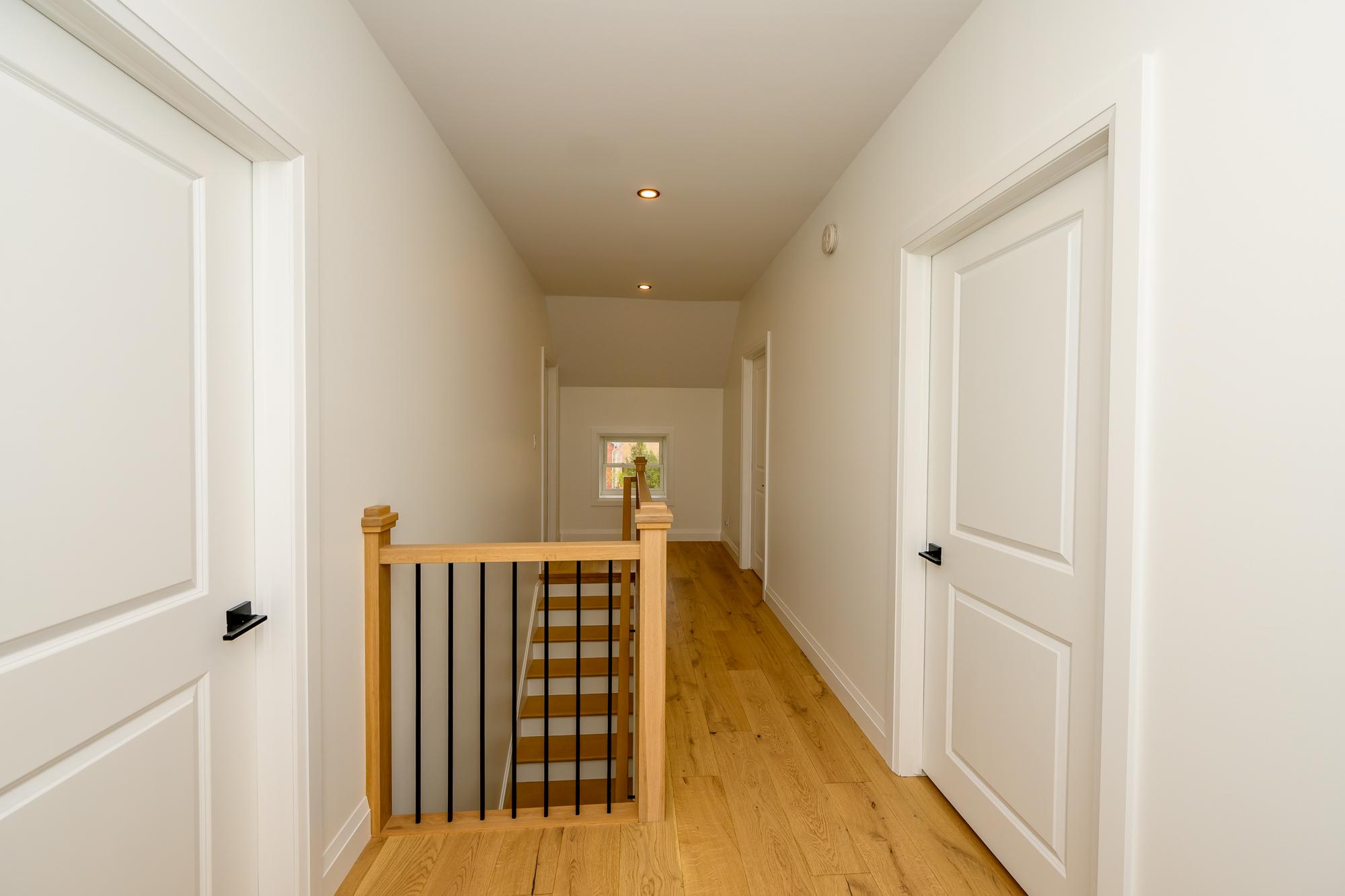 Mechanical systems were entirely reworked from scratch. The renovation included the installation of heated floors, a new hybrid heat pump furnace, complete electrical services with backup power, and a full plumbing overhaul with sump pumps to address the area’s wet conditions. These upgrades ensure the home is well-prepared for another century of service.